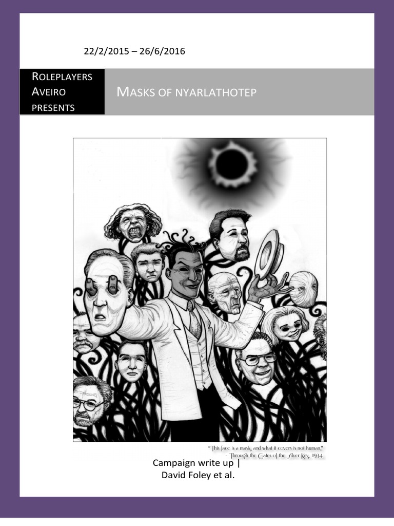 The Masks of Nyarlathotep by LordNyarlathotep on DeviantArt Masks Of Nyarlathotep Pdf Download nyarlathotep, to the wiles of m’weru, and to the wicked death plots of fanatical cultists: unlike other vessels possessed by nyarlathotep, larkin does not transform into monstrous form upon dying. download the complete masks of nyarlathotep we are a sharing community. So please help us by. download free 96 page handouts pack for masks of nyarlathotep,. Masks Of Nyarlathotep Pdf Download.
